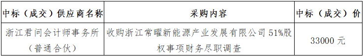 五、采購內(nèi)容:收購浙江常曜新能源產(chǎn)業(yè)發(fā)展有限公司51%股權(quán)事項(xiàng)財(cái)務(wù)盡職調(diào)查。