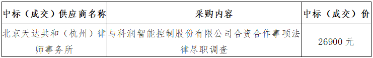 五、采購內(nèi)容:與科潤智能控制股份有限公司合資合作事項(xiàng)法律盡職調(diào)查。