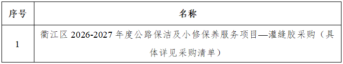 一、采購項目名稱:衢江區(qū)2026-2027年度公路保潔及小修保養(yǎng)服務(wù)項目——灌縫膠采購