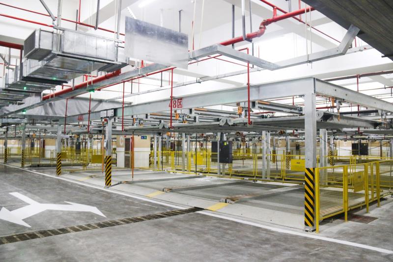tips:停車場分為A/B/C/D四個區(qū)域,共設(shè)置了740余個車位(含部分殘疾人專用車位),其中立體機械車位400多個,普通地面車位300多個。并安裝了20個充電樁(18個快充,2個慢充),以滿足新能源汽車需求。