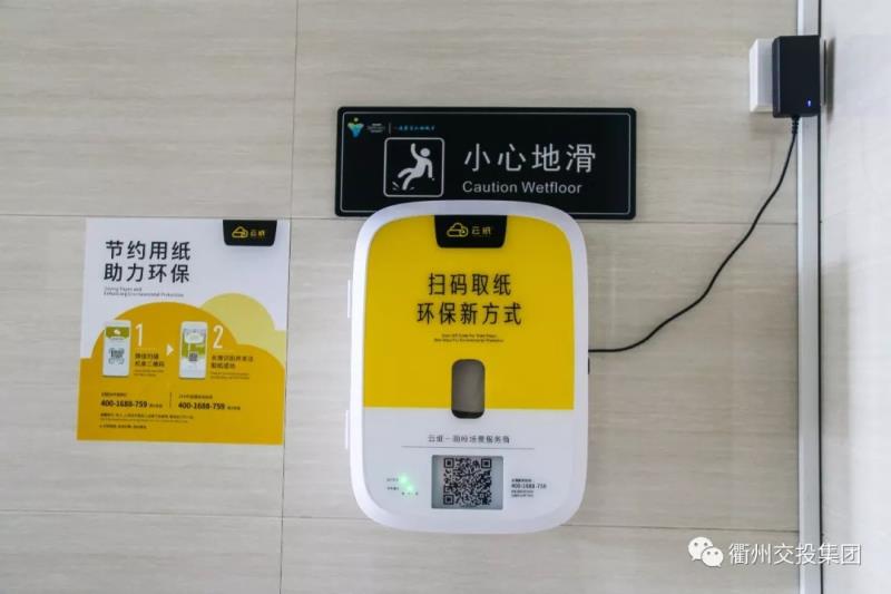 公共衛(wèi)生間內(nèi)設(shè)置了自助取紙機,只要使用手機微信掃描二維碼關(guān)注微信公眾號后,便可免費獲取紙巾。