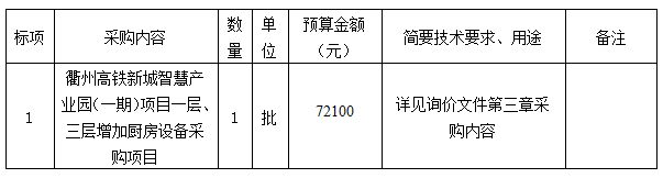 附件:衢州高鐵新城智慧產(chǎn)業(yè)園(一期)項目一層、三層增加廚房設備采購項目