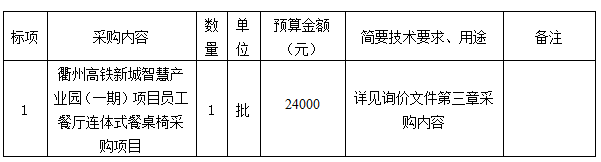 附件:衢州高鐵新城智慧產(chǎn)業(yè)園(一期)項目員工餐廳連體式餐桌椅采購項目