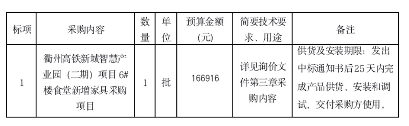 附件:衢州高鐵新城智慧產(chǎn)業(yè)園(二期)項(xiàng)目6#樓食堂新增家具采購(gòu)項(xiàng)目