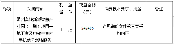 附件:衢州高鐵新城智慧產(chǎn)業(yè)園(一期)項目地下室信號增強設備采購項目詢價文件