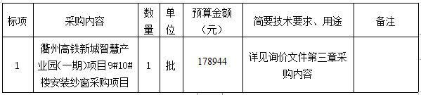 附件:衢州高鐵新城智慧產(chǎn)業(yè)園(一期)項(xiàng)目9#10#樓安裝紗窗采購項(xiàng)目詢價文件