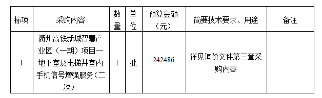 附件:衢州高鐵新城智慧產(chǎn)業(yè)園(一期)項目地下室信號增強(qiáng)設(shè)備采購項目(二次)