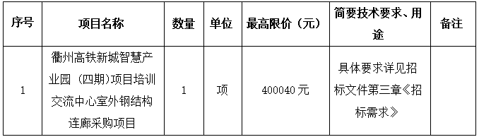項(xiàng)目名稱:衢州高鐵新城智慧產(chǎn)業(yè)園 (四期)項(xiàng)目培訓(xùn)交流中心室外鋼結(jié)構(gòu)連廊采購(gòu)項(xiàng)目
