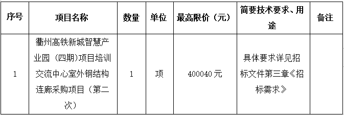 項目名稱:衢州高鐵新城智慧產(chǎn)業(yè)園 (四期)項目培訓(xùn)交流中心室外鋼結(jié)構(gòu)連廊采購項目(第二次)