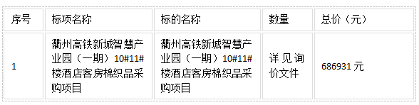 二、項(xiàng)目名稱:衢州高鐵新城智慧產(chǎn)業(yè)園(一期)10#11#樓酒店客房棉織品采購項(xiàng)目