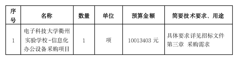 項目名稱:電子科技大學(xué)衢州實驗學(xué)校-信息化辦公設(shè)備采購項目