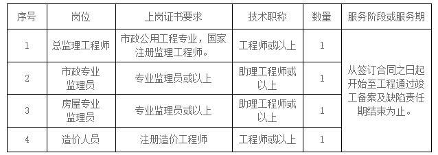 根據(jù)本項目特點,招標(biāo)人提出以下監(jiān)理人員要求,投標(biāo)人應(yīng)根據(jù)本條要求配置監(jiān)理人員,并計算相應(yīng)的投標(biāo)報價。