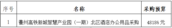 一、采購項目名稱:衢州高鐵新城智慧產(chǎn)業(yè)園(一期)北區(qū)酒店辦公用品采購。