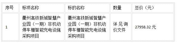 二、項(xiàng)目名稱:衢州高鐵新城智慧產(chǎn)業(yè)園(一期)非機(jī)動(dòng)停車棚智能充電設(shè)施采購項(xiàng)目