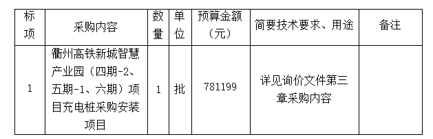 參照《衢州市國(guó)有企業(yè)采購(gòu)管理辦法(試行)》等規(guī)定,衢州市智信工程咨詢(xún)有限公司受衢州市智慧置業(yè)有限公司的委托,就衢州高鐵新城智慧產(chǎn)業(yè)園(四期-2、五期-1、六期)項(xiàng)目充電樁采購(gòu)安裝項(xiàng)目進(jìn)行詢(xún)價(jià),本項(xiàng)目為非依法必招項(xiàng)目,現(xiàn)請(qǐng)合格供應(yīng)商參加投標(biāo)。