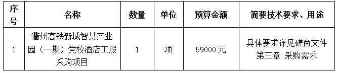 項目名稱:衢州高鐵新城智慧產(chǎn)業(yè)園(一期)黨校酒店工服采購項目