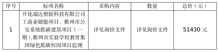 開(kāi)化瑞達(dá)塑膠科技有限公司工商業(yè)儲(chǔ)能項(xiàng)目、衢州市公安系統(tǒng)低碳建筑項(xiàng)目(一期)、衢州市實(shí)驗(yàn)學(xué)校教育集團(tuán)綠色低碳校園項(xiàng)目監(jiān)理中標(biāo)結(jié)果公告(非政府采購(gòu))