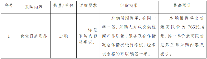 二、項目名稱:浙江衢州公交集團有限公司食堂日雜用品采購項目