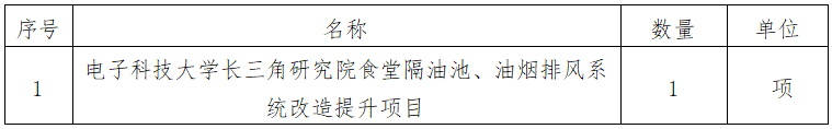 一、采購項目名稱:電子科技大學長三角研究院食堂隔油池、油煙排風系統(tǒng)改造提升項目