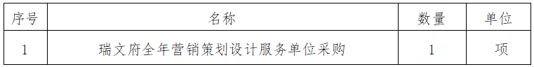 一、采購項目名稱:瑞文府全年營銷策劃設(shè)計服務(wù)單位采購