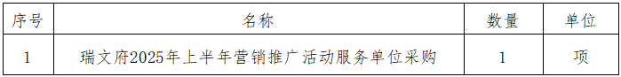 一、采購項目名稱:瑞文府2025年上半年營銷推廣活動服務(wù)單位采購