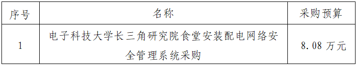 一、項目名稱:電子科技大學長三角研究院食堂安裝配電網(wǎng)絡(luò)安全管理系統(tǒng)采購