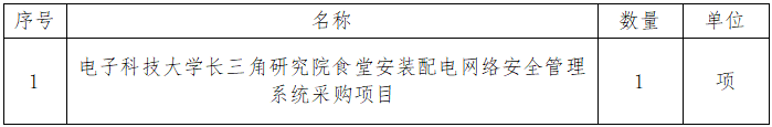 一、采購(gòu)項(xiàng)目名稱:電子科技大學(xué)長(zhǎng)三角研究院食堂安裝配電網(wǎng)絡(luò)安全管理系統(tǒng)采購(gòu)項(xiàng)目