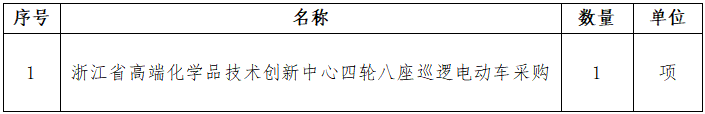 一、采購項目名稱:浙江省高端化學品技術創(chuàng)新中心四輪八座巡邏電動車采購項目