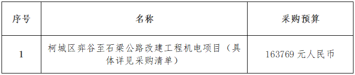 一、項目名稱:柯城區(qū)弈谷至石梁公路改建工程機(jī)電項目