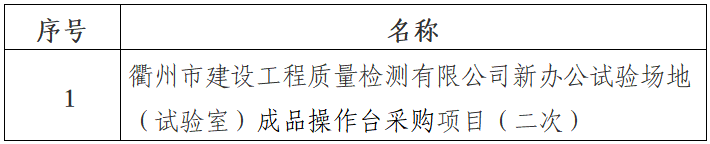 一、采購項(xiàng)目名稱:衢州市建設(shè)工程質(zhì)量檢測(cè)有限公司新辦公試驗(yàn)場(chǎng)地(試驗(yàn)室)成品操作臺(tái)采購項(xiàng)目(二次)
