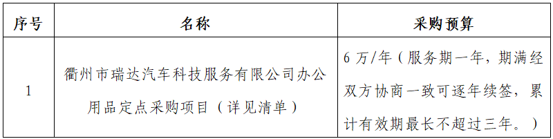 一、項(xiàng)目名稱:衢州市瑞達(dá)汽車科技服務(wù)有限公司辦公用品定點(diǎn)采購項(xiàng)目