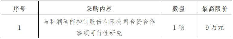 二、項目名稱:與科潤智能控制股份有限公司合資合作事項可行性研究