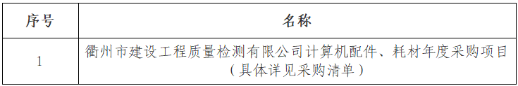 一、采購項(xiàng)目名稱:衢州市建設(shè)工程質(zhì)量檢測有限公司計(jì)算機(jī)配件、耗材年度采購項(xiàng)目