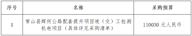 一、項(xiàng)目名稱(chēng):常山縣輝何公路配套提升項(xiàng)目竣(交)工檢測(cè)機(jī)電項(xiàng)目