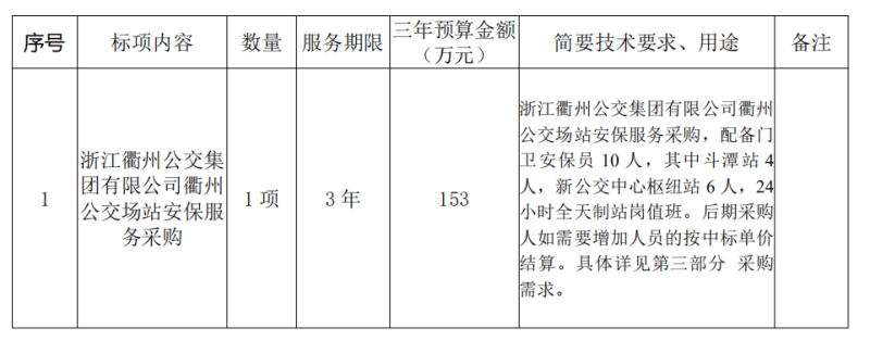 二、項(xiàng)目名稱:浙江衢州公交集團(tuán)有限公司衢州公交場站安保服務(wù)采購項(xiàng)目
