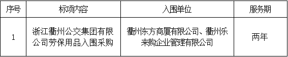 二、采購項目名稱:浙江衢州公交集團有限公司勞保用品入圍采購項目