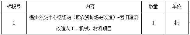 二、項(xiàng)目名稱:衢州公交中心樞紐站(原農(nóng)貿(mào)城場(chǎng)站改造)-老舊建筑改造人工、機(jī)械、材料項(xiàng)目