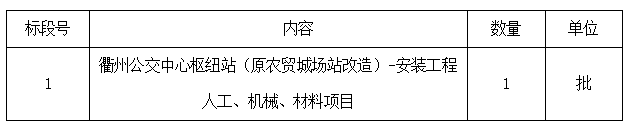 二、項目名稱:衢州公交中心樞紐站(原農貿城場站改造)-安裝工程人工、機械、材料項目