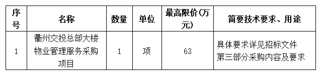 項(xiàng)目名稱:衢州交投總部大樓物業(yè)管理服務(wù)采購(gòu)項(xiàng)目