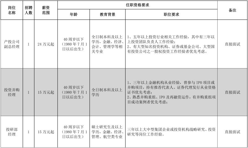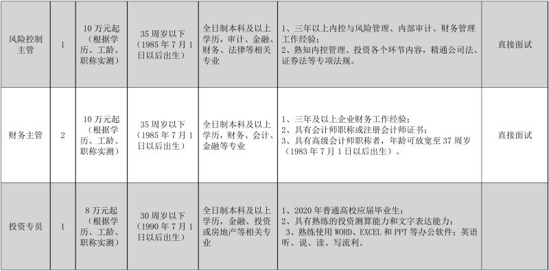 2、產(chǎn)投公司副總經(jīng)理、投資并購經(jīng)理、投研部經(jīng)理、風(fēng)險控制主管、財務(wù)主管五個崗位采用直接面試形式,報名人員通過資格審查后進(jìn)入面試環(huán)節(jié)。