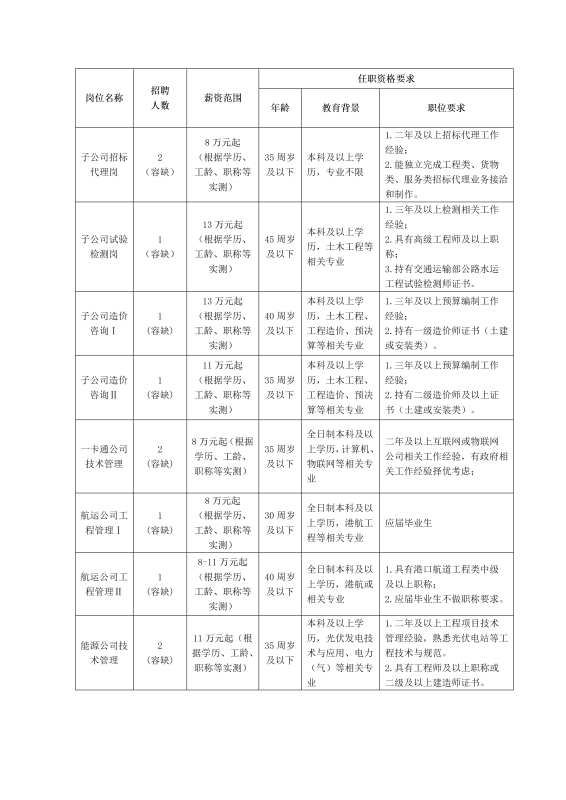 現(xiàn)因集團(tuán)發(fā)展需要,委托衢州市慧城人才開(kāi)發(fā)有限公司(以下簡(jiǎn)稱(chēng)慧城人才公司)面向社會(huì)公開(kāi)招聘21名工作人員,具體工作單位由集團(tuán)根據(jù)工作需要,在集團(tuán)本部和下屬子公司之間統(tǒng)籌安排。具體招聘事項(xiàng)公告如下: